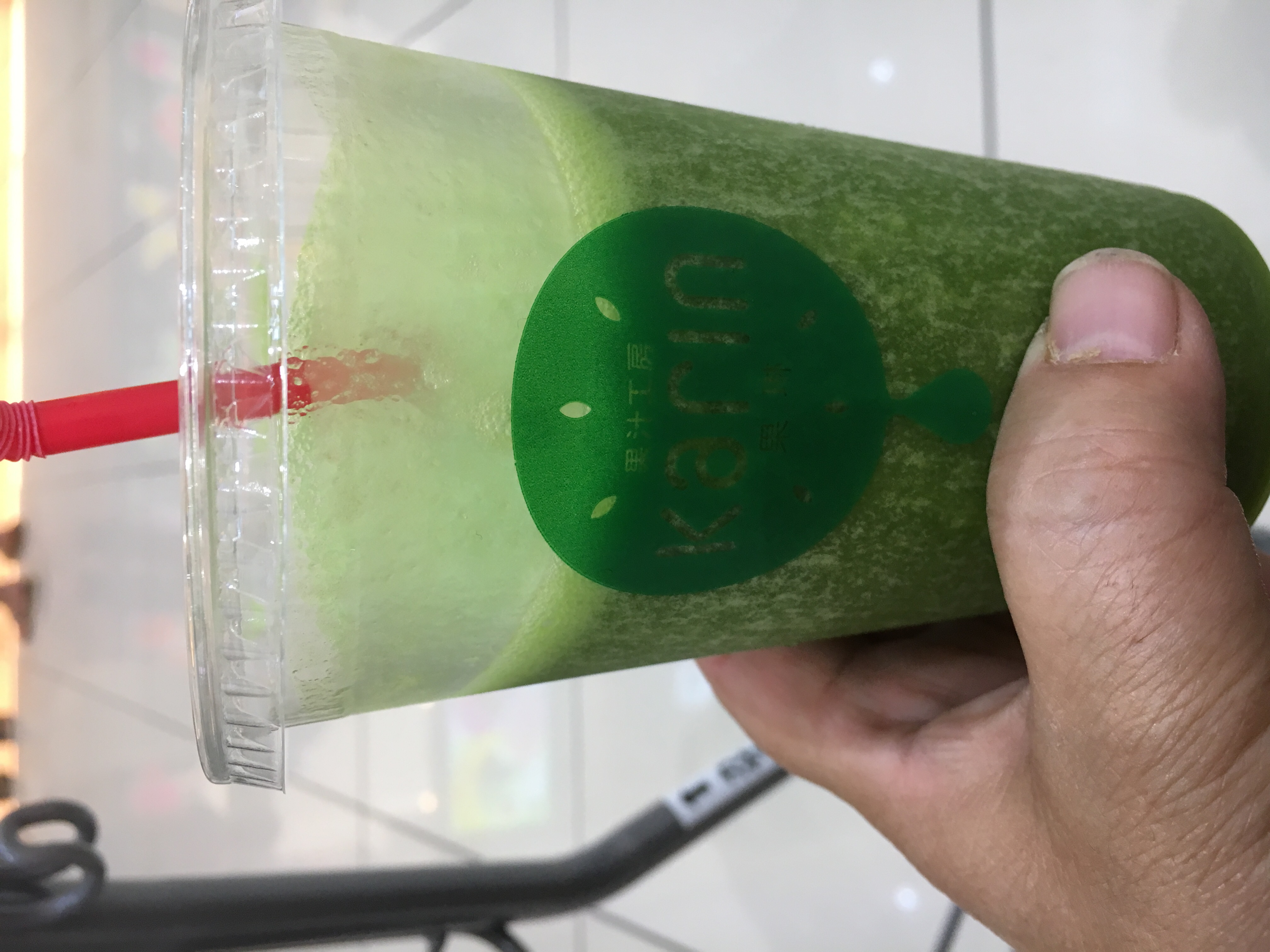グリーンバナナスムージーを飲み