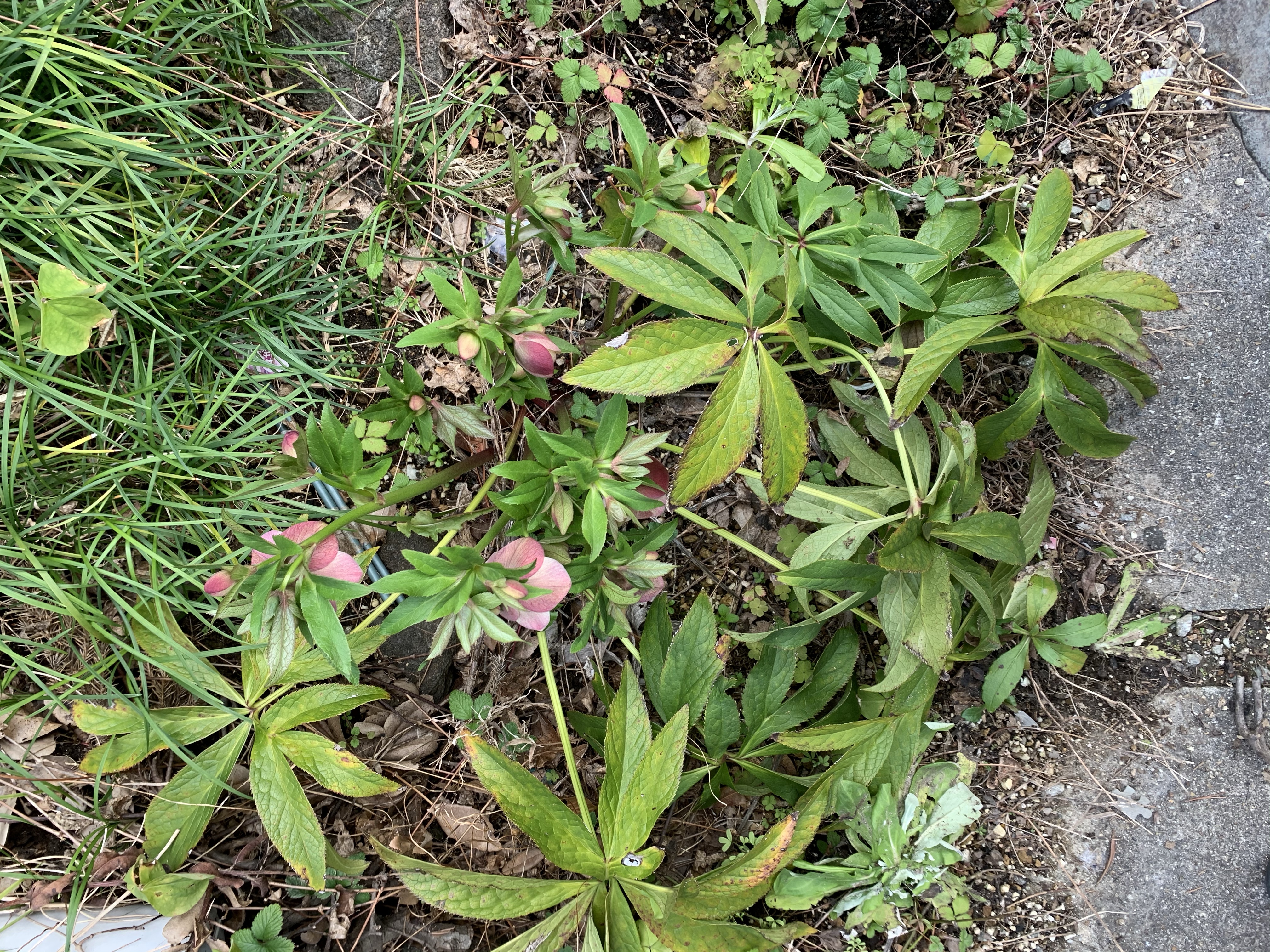 地植えしたクリスマスローズの花も