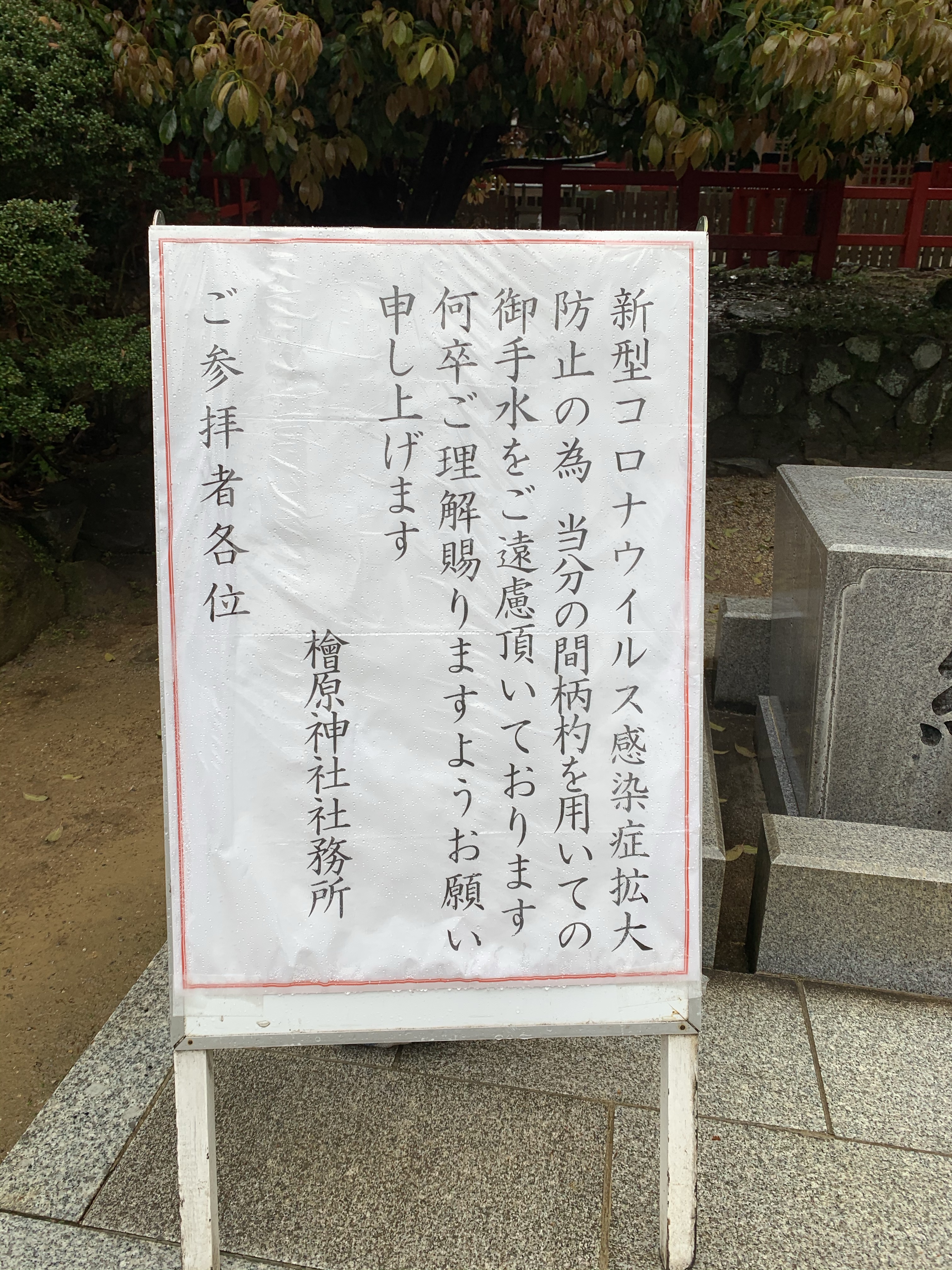 桧原神社の手水舎も使用禁止になりました。