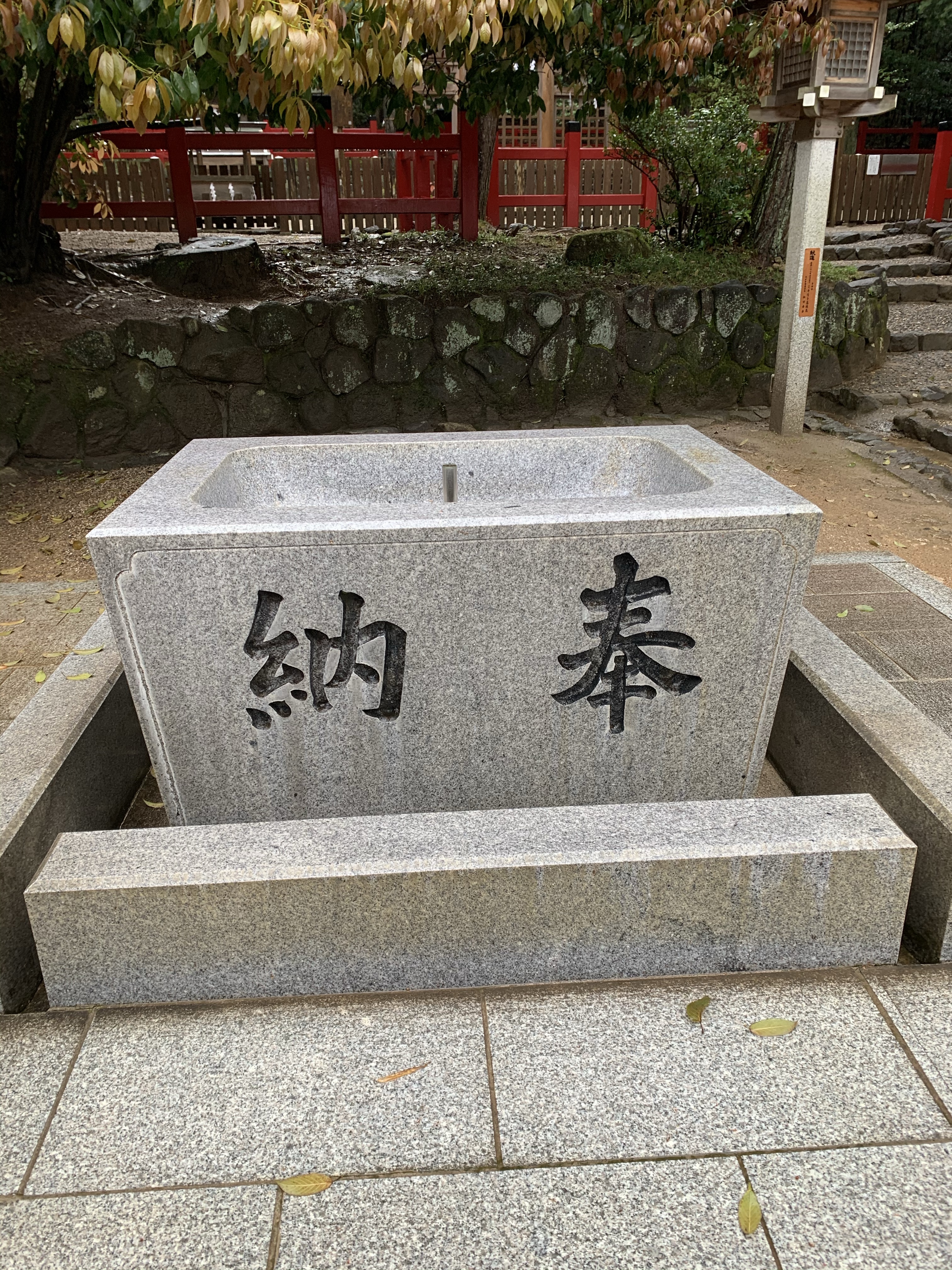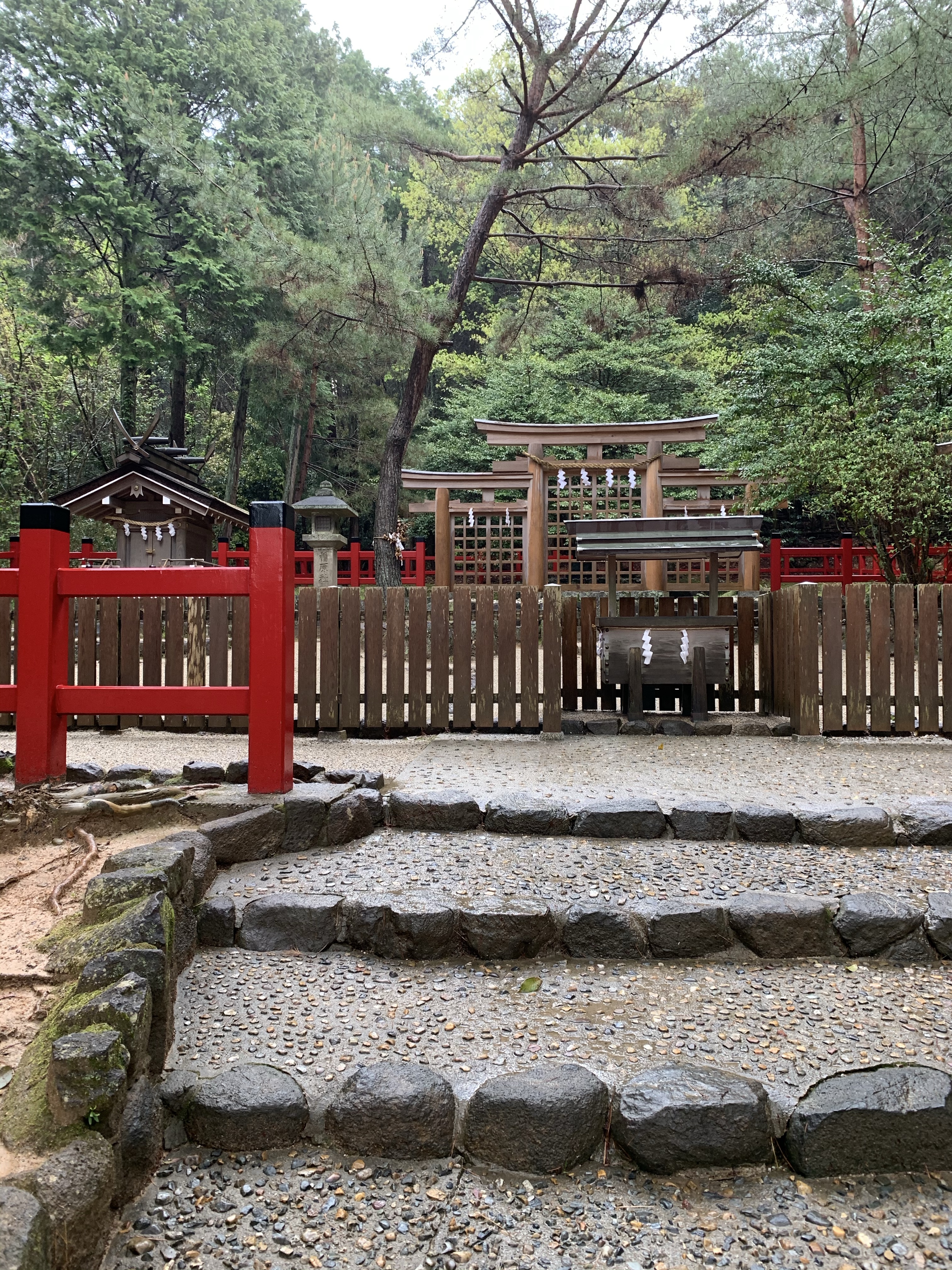 雨に濡れた三ツ鳥居を眺めて