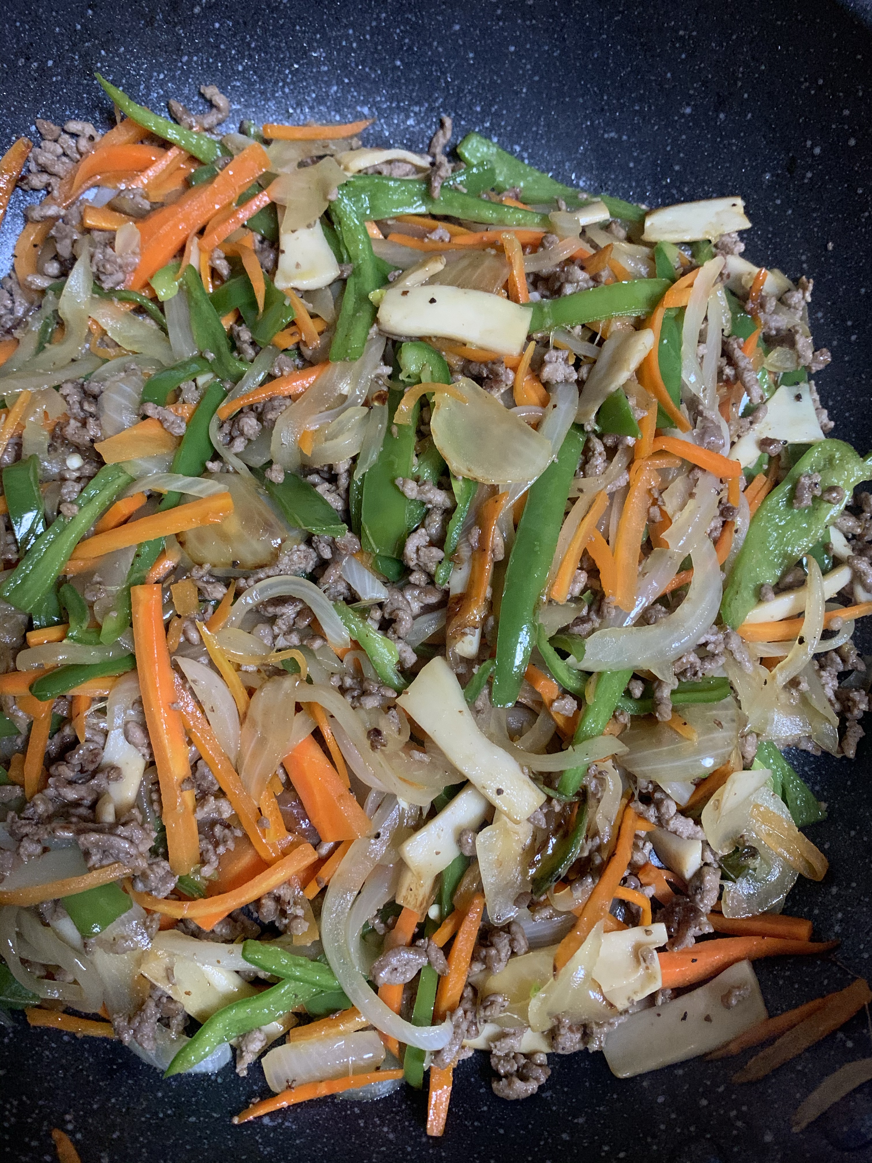 豚肉、ニンジン、ピーマンを炒め🥕