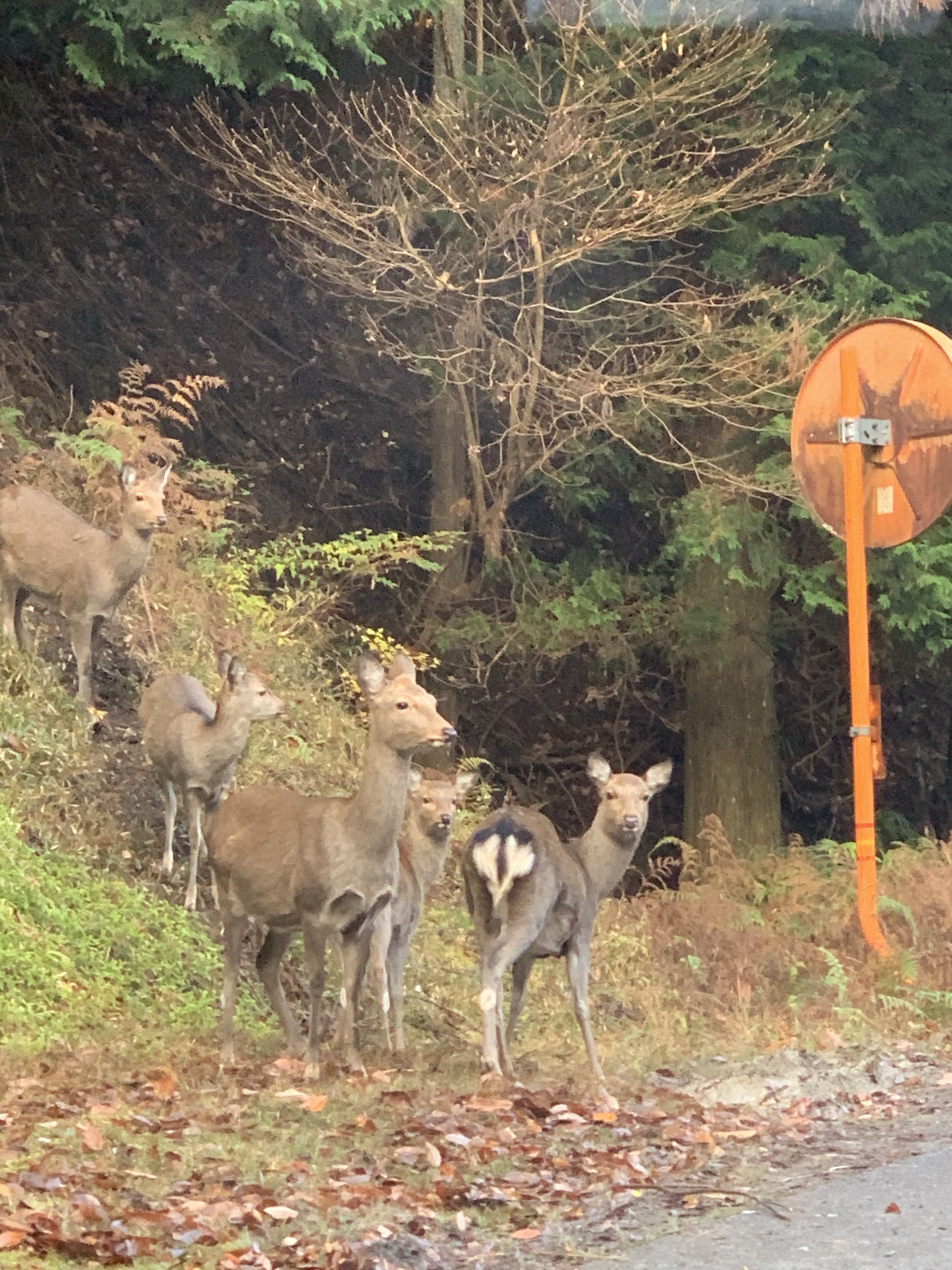 団体の鹿さんたちが山から降りてきました