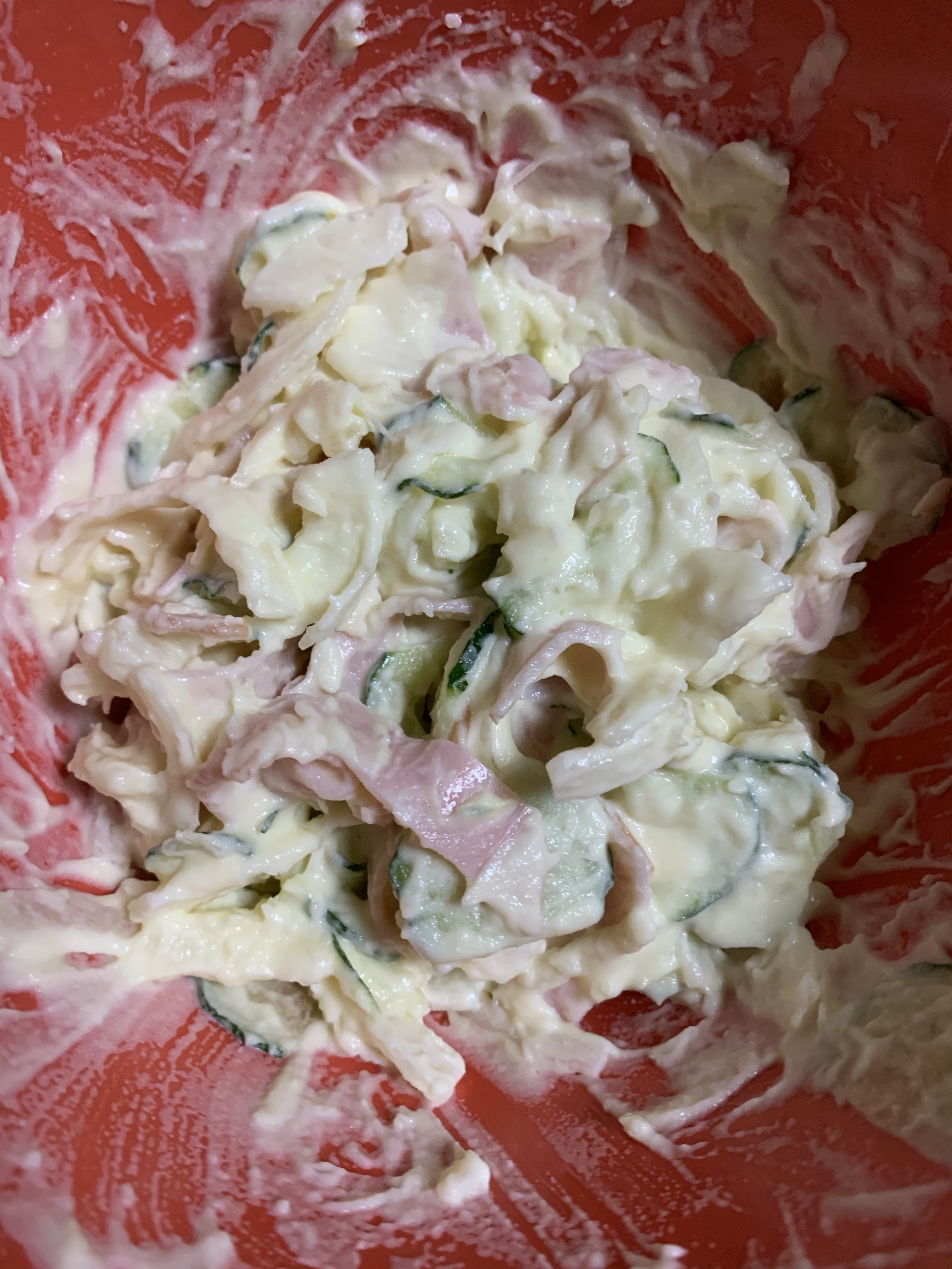ハムを入れてマヨネーズで和えた