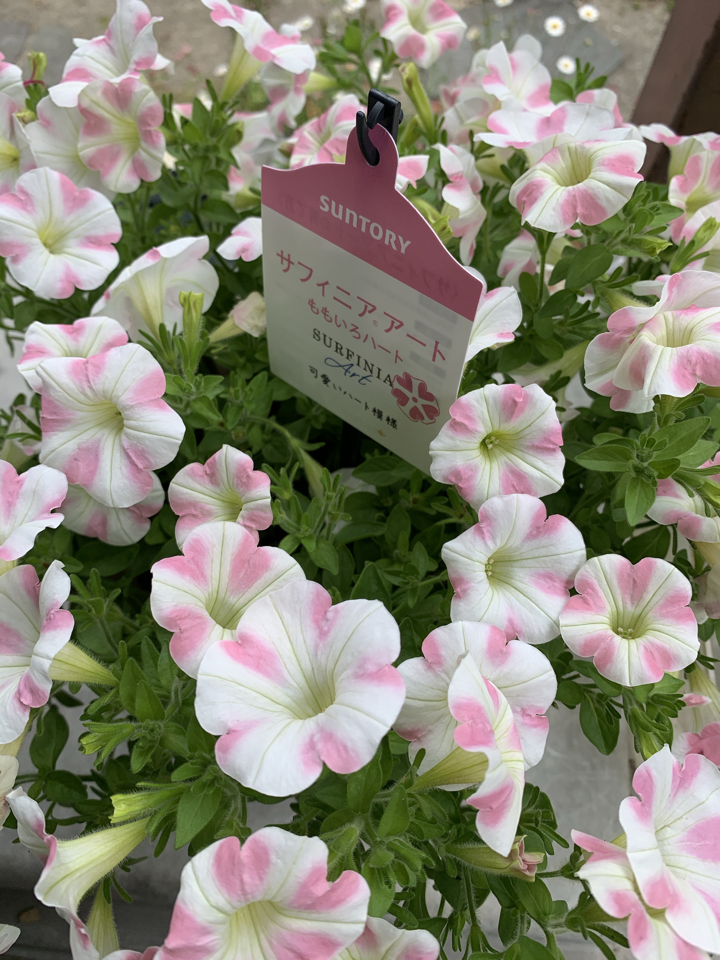ピンクと白のマーブルのペチュニアが
